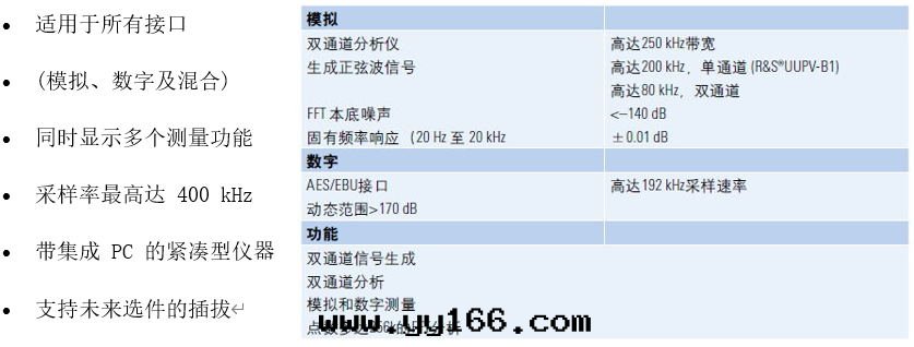 在(zài)模拟接口(kǒu)以(yǐ)及(jí)(在(zài)安(ān)裝(zhuāng) R&S®UPV-B2/-B41/-B42 選件(jiàn)的(de)情(qíng)况下(xià))在(zài)數字(zì)接口(kǒu)上(shàng)的(de)廣泛的(de)測量(liàng)功能