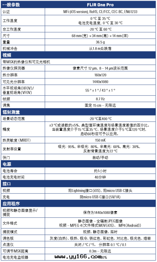 FLIR ONE Pro拥有(yǒu)更(gèng)宽(kuān)的(de)温(wēn)度(dù)量(liàng)程,能夠測量(liàng)介于-20°至(zhì)400°C之(zhī)间的(de)温(wēn)度(dù)。FLIR ONE Pro支持(chí)至(zhì)多三(sān)个(gè)點(diǎn)測温(wēn)和(hé)至(zhì)多六个(gè)温(wēn)度(dù)感(gǎn)兴趣区域,为您提(tí)供更(gèng)強(qiáng)的(de)随身(shēn)图(tú)像分(fēn)析與(yǔ)報告功能。