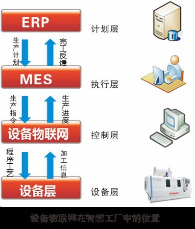 设備物(wù)聯网(wǎng)系(xì)統是(shì)CPS賽博物(wù)理(lǐ)系(xì)統(Cyber-Physical Systems)及(jí)工業互聯网(wǎng)在(zài)制造企業的(de)典型应用(yòng),是(shì)建设智能(néng)工廠(chǎng)/数字(zì)化(huà)車間(jiān)的(de)前(qián)提和(hé)基礎,是(shì)MES系(xì)統與(yǔ)数字(zì)化(huà)设備之(zhī)間(jiān)信(xìn)息沟(gōu)通(tòng)的(de)桥梁(liáng),是(shì)企業實(shí)現(xiàn)智能(néng)制造的(de)核心(xīn)。系(xì)統接收(shōu)来(lái)自(zì)上(shàng)层(céng)MES系(xì)統的(de)計(jì)劃(huà)指令,並(bìng)将生産指令、数控程序等信(xìn)息傳遞給(gěi)車間(jiān)現(xiàn)场和(hé)设備;另一(yī)方(fāng)面(miàn),将實(shí)时(shí)采集到的(de)设備及(jí)生産信(xìn)息,经过(guò)計(jì)算、分(fēn)析後(hòu)反(fǎn)饋給(gěi)MES等系(xì)統,成(chéng)为(wèi)上(shàng)层(céng)信(xìn)息系(xì)統如(rú)MES、ERP等系(xì)統決策的(de)依據(jù)。